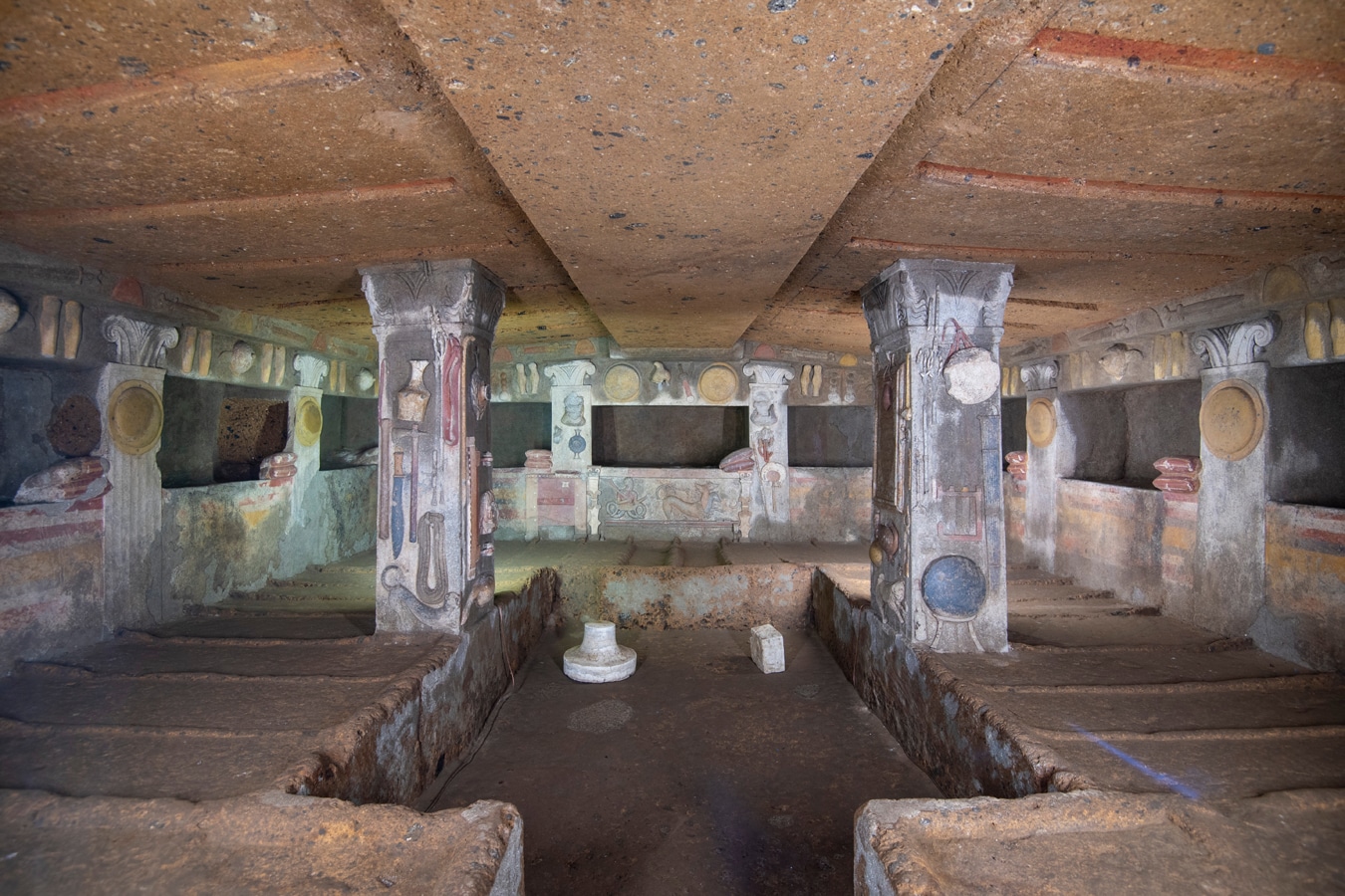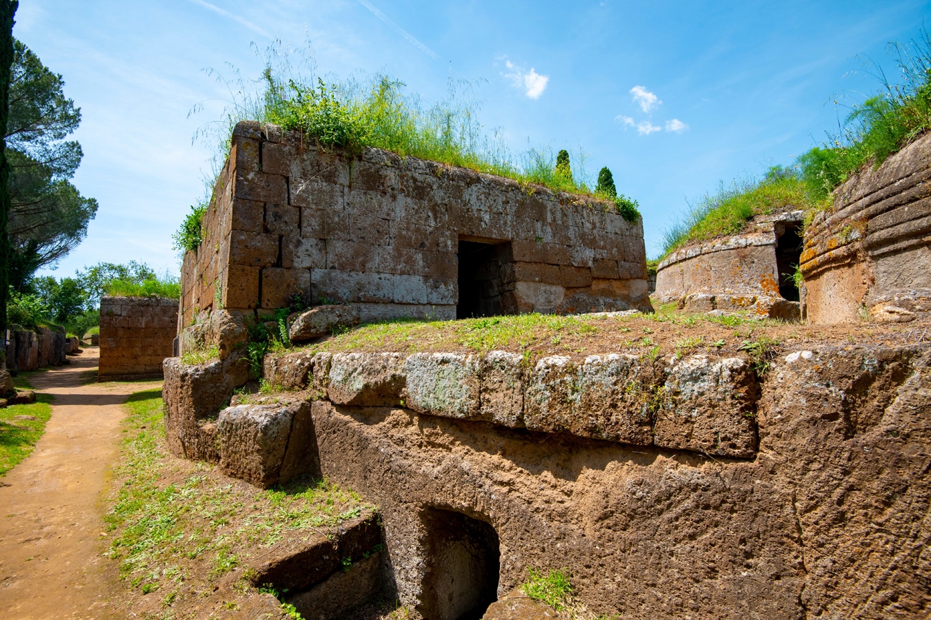 To se v dnešní podobě nijak výrazně neliší od jiných malebných měst italského venkova, ale o to významnější jsou archeologické lokality v jeho blízkosti. Především Banditaccia, prastará nekropole na náhorní plošině při severním okraji města, sotva 500 m od nejbližších obydlí, vyznačující se největším známým počtem etruských hrobek vůbec (je jich několik set a střízlivý odhad počtu pohřbů, které se zde skrývají, činí kolem 20 000), a pak řada menších pohřebišť a osamělých hrobek v blízkém okolí. Dnes představují obdivuhodnou přehlídku etruských zvyklostí a typů funerální architektury různého typu, od prostých hrobů s ostatky uloženými do země přes hrobky na způsob domů řazených v liniích běžných ulic až k okázalým samostatným mohylám s vysokými násypy země. Některé hrobky byly vytesány ve skále nebo postaveny z kamene, ale jak už jsme si ukázali v předchozím článku, jedno jim bylo společné – snaha vytvořit zesnulému co nejpříjemnější příbytek pro posmrtný život. Není proto divu, že tomu odpovídala také malířská výzdoba interiérů, zpřítomňující zesnulému šťastné chvíle jeho života, a to jak v technice fresky, tak dokonce v polychromovaných štukov…