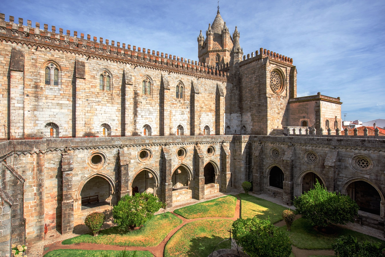 Náměstí Praça do Giraldo s nádhernou renesanční kašnou uprostřed, běloskvoucím kostelem sv. Antonína a domy okrášlenými podloubím v maurském stylu je ideálním výchozím bodem pro procházku městem. Po třídě Rua 5 de Outubro, kde naši pozornost poutají četné kavárny a obchůdky s řemeslnými a jinými výrobky, dojdeme před katedrálu Panny Marie vystavěnou z šedých žulových kvádrů, jež připomíná spíše nějakou pevnost a na první pohled působí trochu strašidelně. Po stranách hlavního portálu se tyčí dvě věže, jež jsou snadno rozpoznatelné díky své asymetrii a zvláštnímu tvaru. Jedna je opatřena malými věžičkami, druhá zakončena kuželovitou špicí, architektonickým prvkem, který se v Portugalsku vyskytuje dost vzácně. Katedrála se stavěla téměř 50 let a vysvěcení se dočkala v roce 1204. Údajně právě na tomto místě byly požehnány vlajky lodi Vasca da Gamy před tím, než poprvé vyplul do zámoří. Románský sloh se zde snoubí s gotikou, hlavní oltář a kněžiště jsou ale barokní, od J. F. Lud…